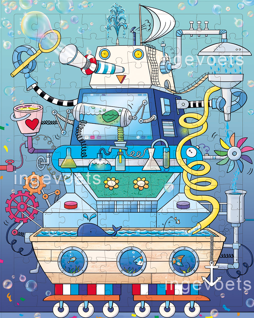 Illustraties voor kinderboeken, educatieve en redactionele tekeningen, cartoons en grappige kijkplaten en praatplaten door illustratrice Inge Voets.